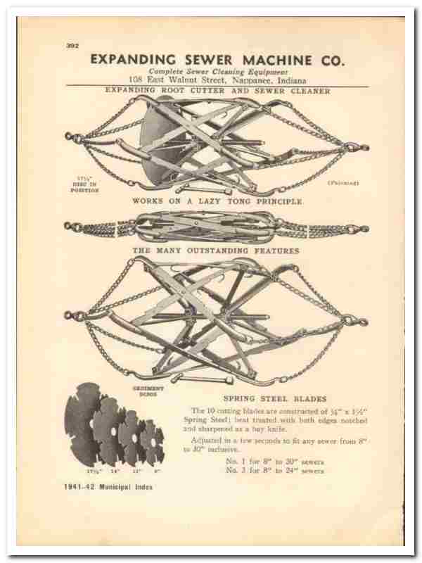 Original 1941 municipal trade vintage catalog for the EXPANDING SEWER MACHINE COMPANY. Main office and plant were located at 108 East Walnut Street, Nappanee, IN.