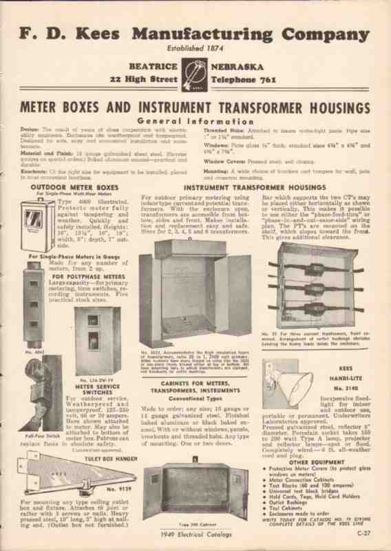 F D Kees Mfg Company 1948 Vintage Catalog Electric Meter Boxes Outdoor
