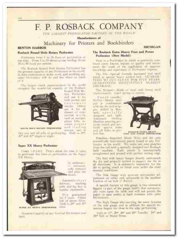 F P Rosback Company 1930 vintage printing catalog perforator machinery