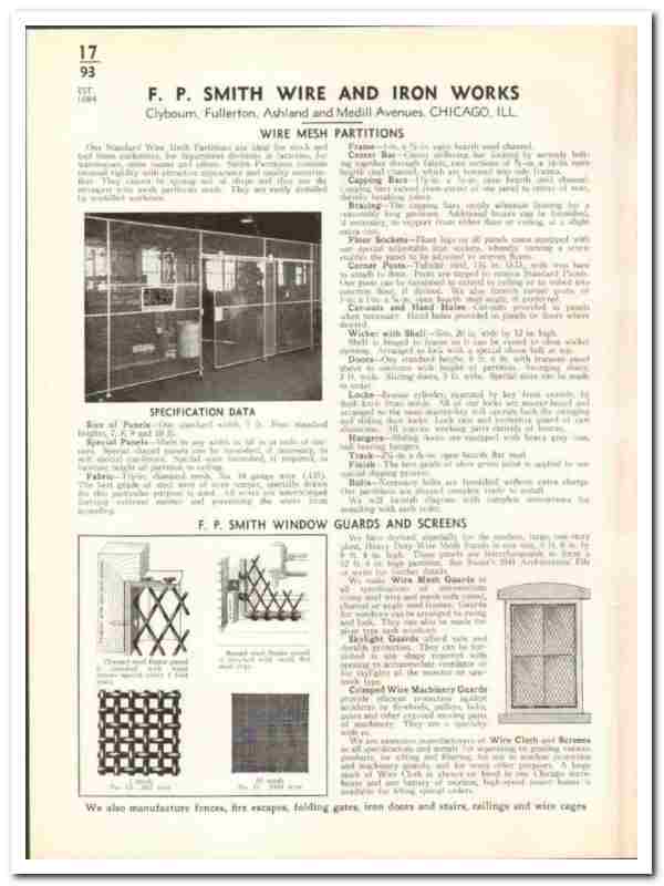 F P Smith Wire Iron Works 1942 vintage wall catalog partitions