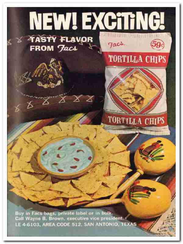 facs company 1967 new exciting tortilla chips snack food vintage ad