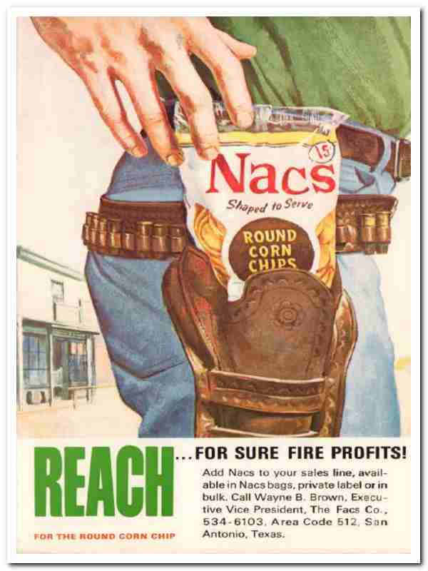 facs company 1967 reach nacs round corn chips snack food vintage ad