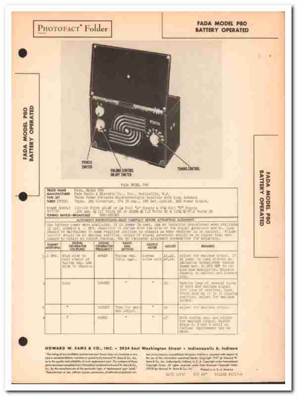 fada model p80 4-tube portable am radio receiver sams photofact manual