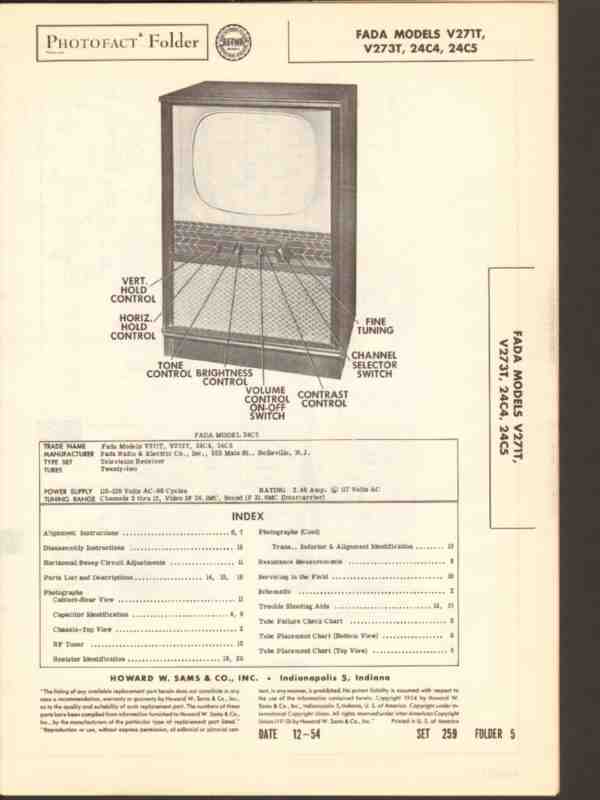 fada model v27xt 24cx tv television receiver sams photofact manual