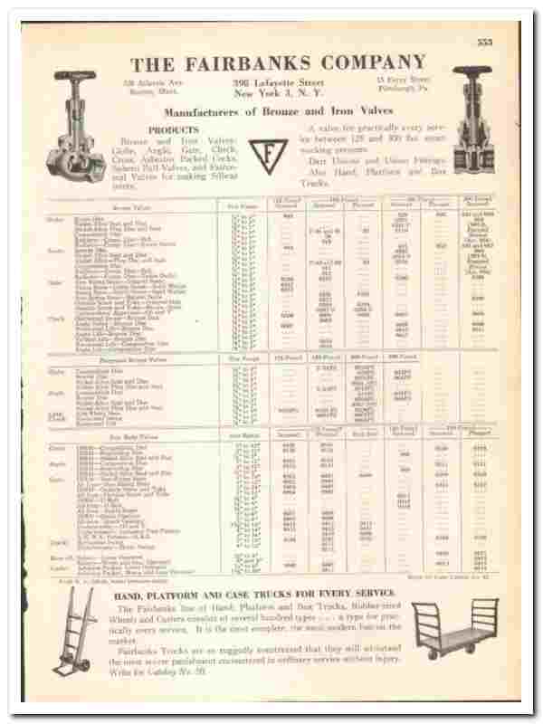 Fairbanks Company 1939 vintage industrial catalog valves globe gate
