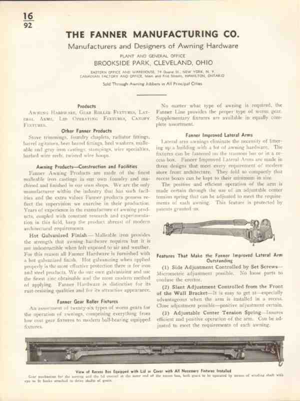 Fanner Mfg Company 1938 Vintage Catalog Awning Hardware Lateral Arms