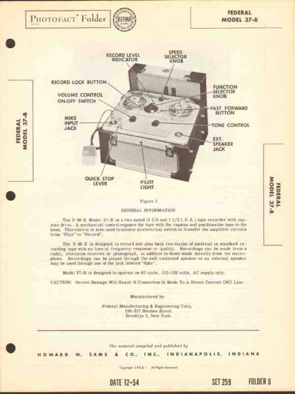 federal model 37-b magnetic tape recorder sams photofact manual
