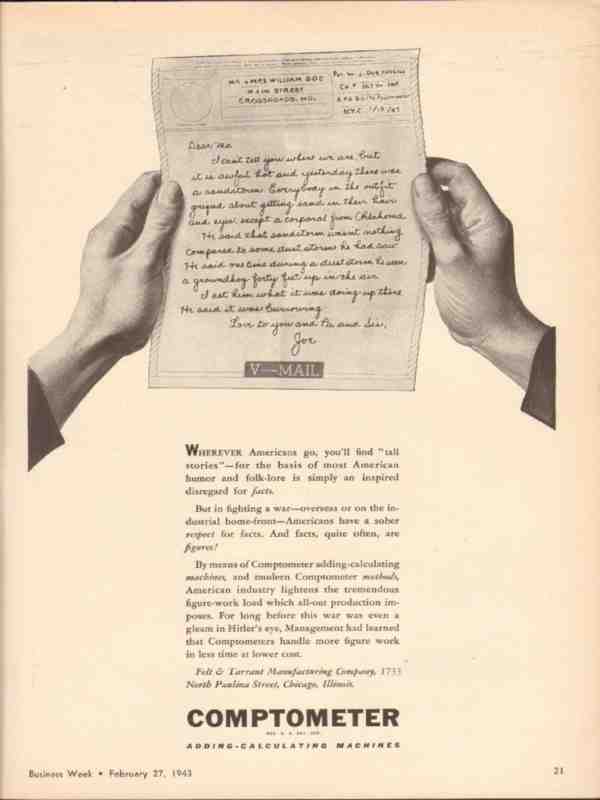 felt and tarrant mfg company 1943 tall stories comptometer vintage ad