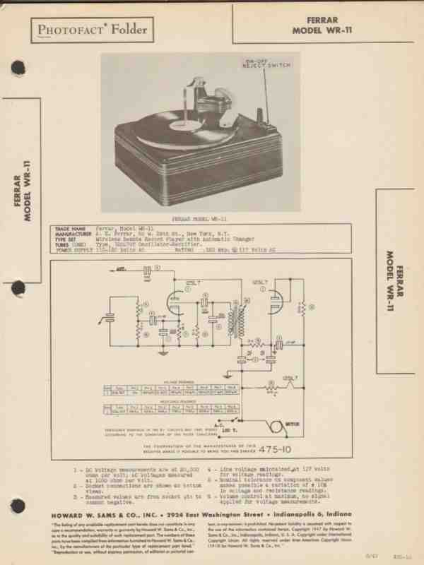 ferrar model wr-11 wireless remote record player sams photofact manual