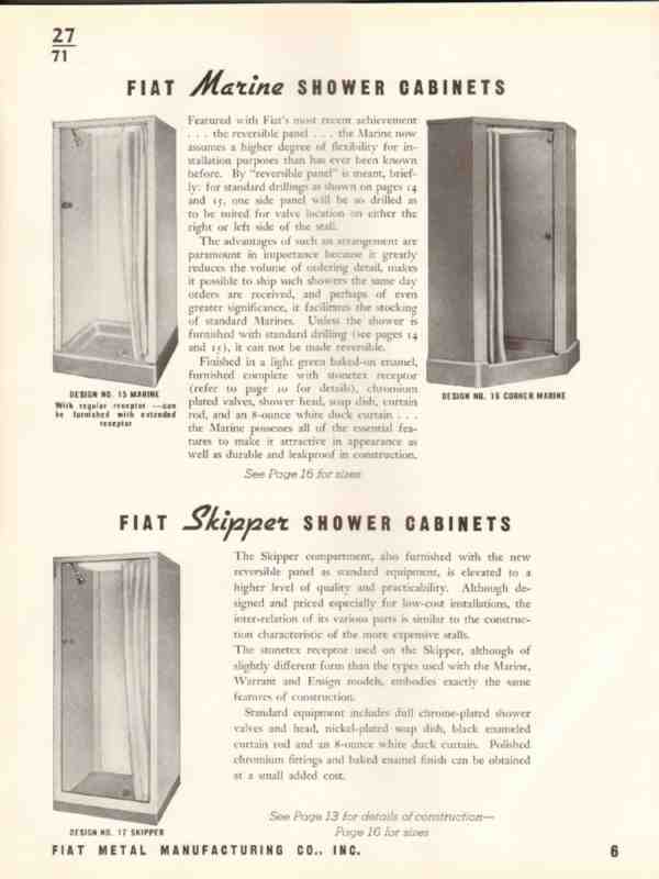 Fiat Metal Mfg Company 1940 Vintage Catalog Shower Cabinets Enclosures