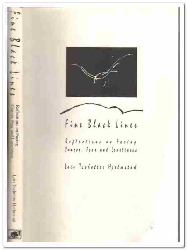 Soft covered book titled FINE BLACK LINES, REFLECTIONS ON FACING CANCER, FEAR AND LONELINESS by Lois Tschetter Hjelmstad. 1993, Mulberry Hill Press, Colorado Independent Publishers Award, 165 pages. Autographed by author.