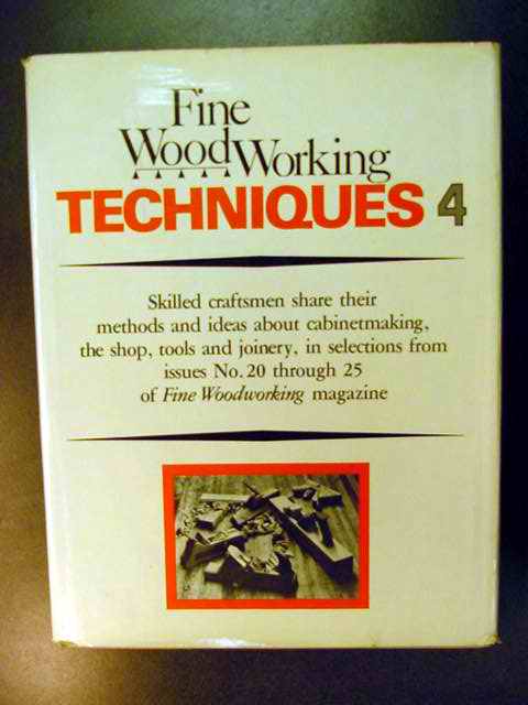 Hard covered book titled FINE WOODWORKING TECHNIQUES 4 Skilled Craftsmen share their Methods. and Ideas about Cabinetmaking, the Shop, Tools and Joinery, in selections from issues No. 20 through 25 of Fine Woodworking magazine First Printing 1982, 222 pages.