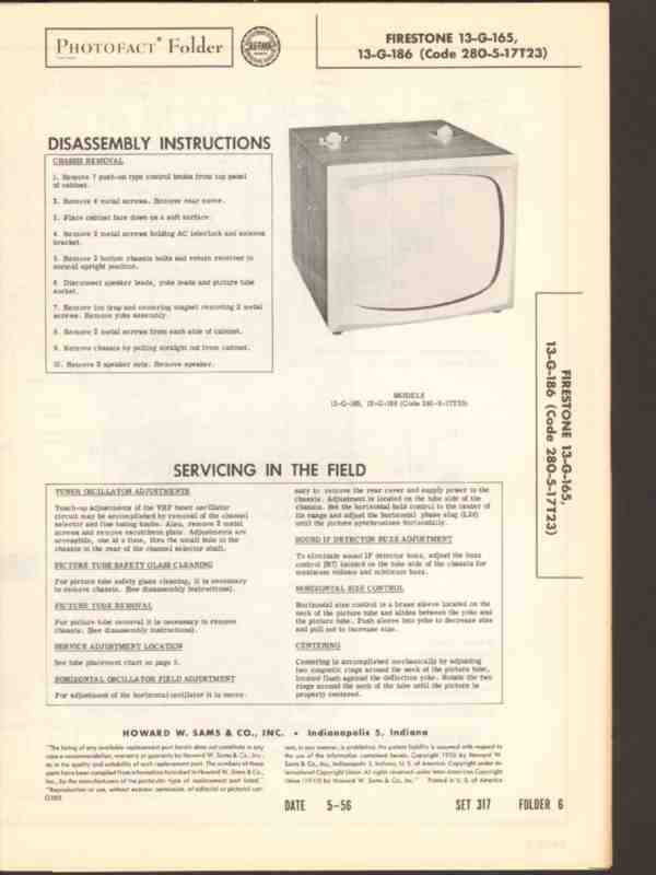 firestone model 13-g-165 13-g-186 tv television sams photofact manual