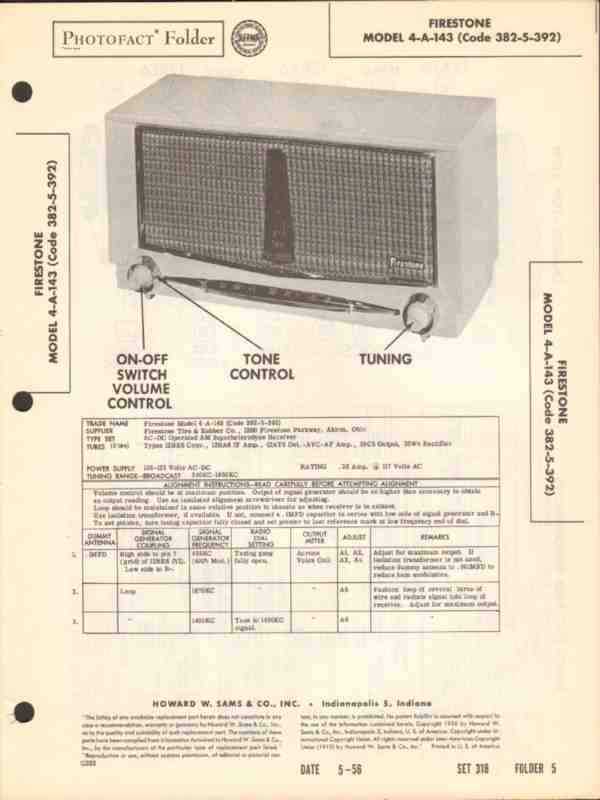 firestone model 4-a-143 4-tube am radio receiver sams photofact manual