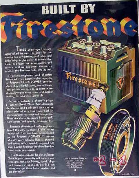 firestone tire rubber company 1934 battery plugs brakes vintage ad