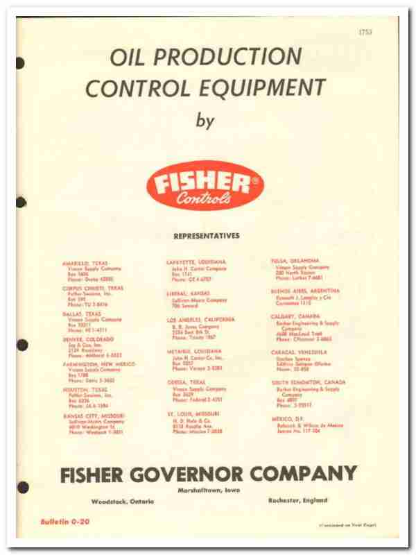 Original 1959 Oil and Gas trade vintage catalog for FISHER GOVERNOR COMPANY. Main office and plant was located at Marshalltown, IA.