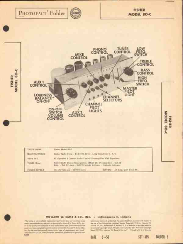 fisher model 80-c 5-chan audio pre-amplifier eq sams photofact manual