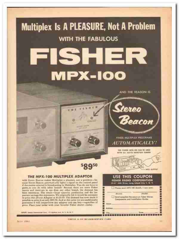 fisher radio corp 1961 mpx-100 multiplex stereo beacon vintage ad