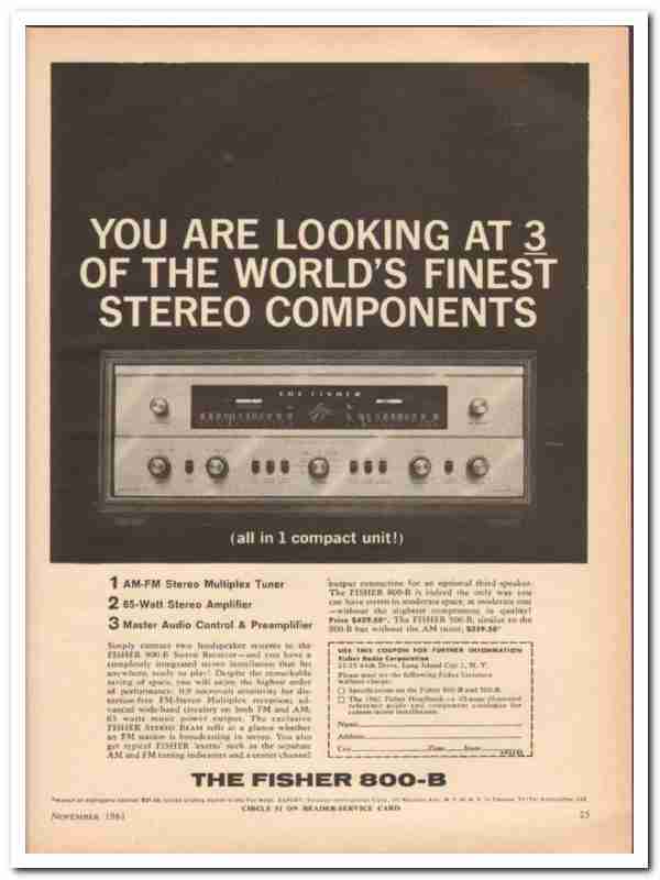 fisher radio corp 1961 stereo components fm receiver 800-b vintage ad