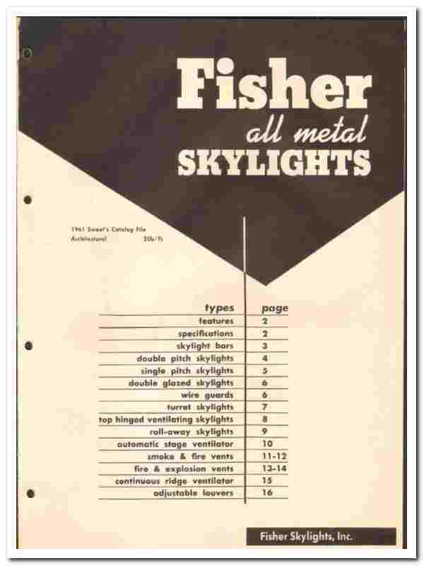 Fisher Skylights Inc 1961 vintage roofing catalog all-metal