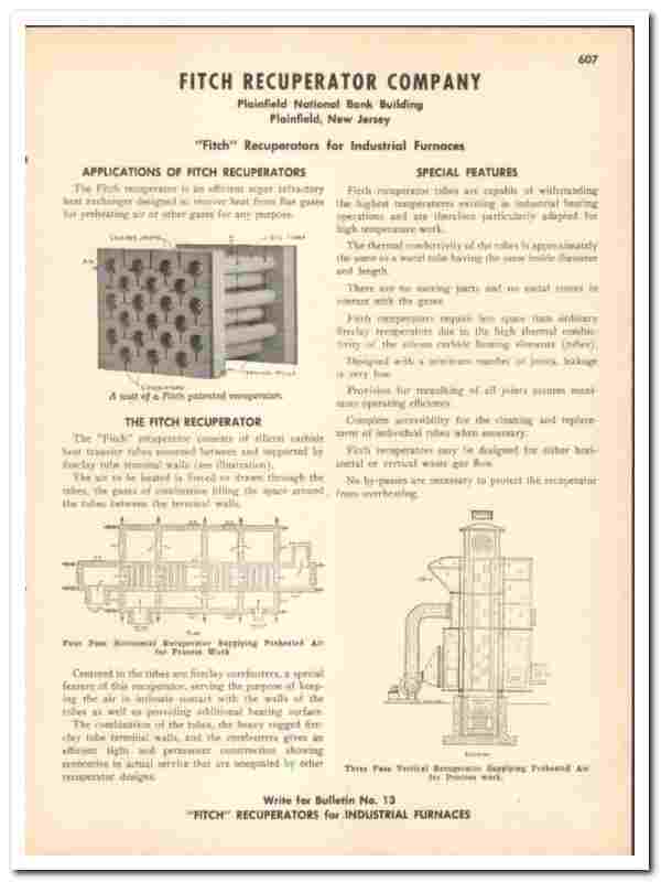 Fitch Recuperator Company 1947 vintage industrial catalog furnace heat