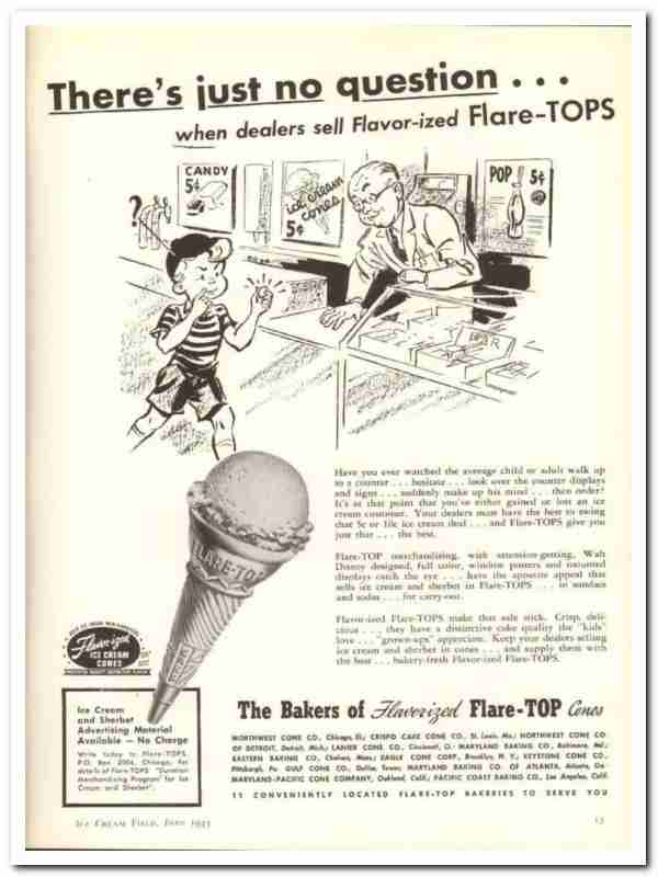 Flare-Top Cone Company 1943 vintage ad ice cream question