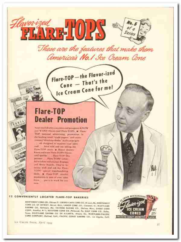 Original ice cream trade vintage ad for FLARE-TOP CONE ..