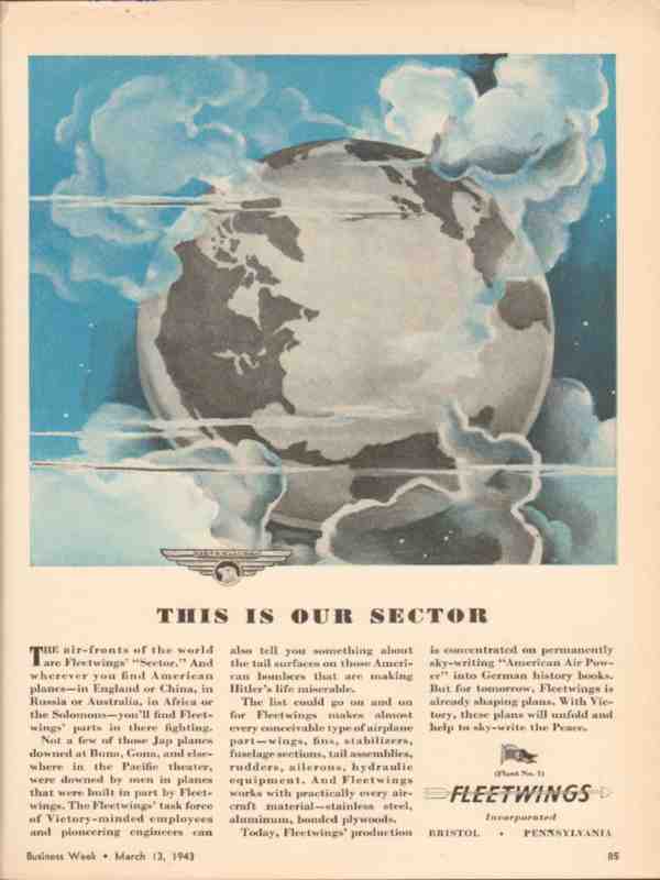 fleetwings inc 1943 this our sector air-fronts of the world vintage ad
