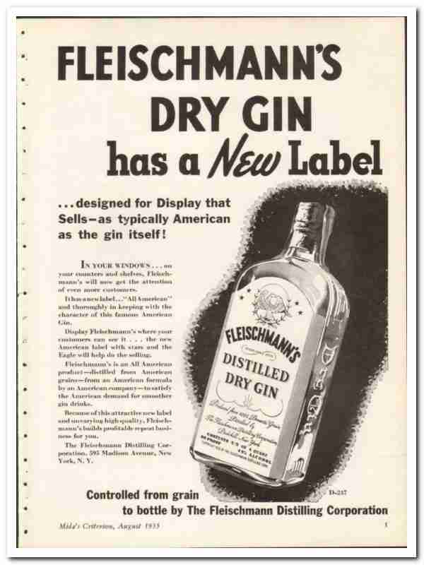 Fleischmann Distilling Corp 1935 vintage whiskey ad dry gin label
