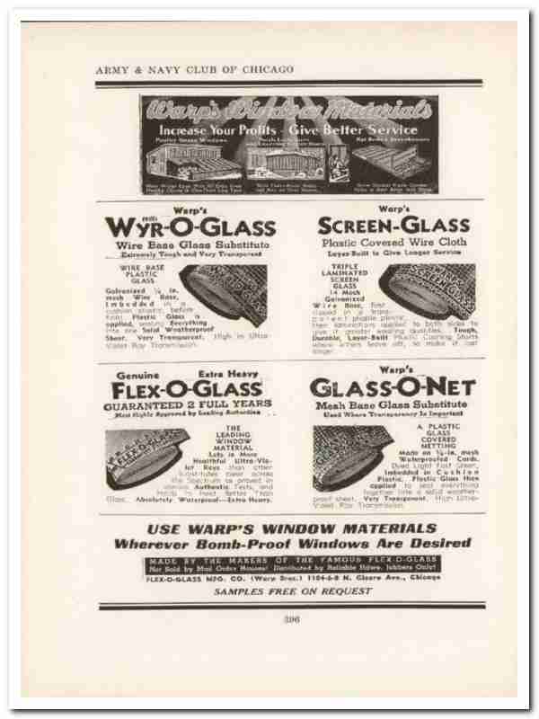 flex-o-glass mfg company 1943 warps window ww2 wartime vintage ad