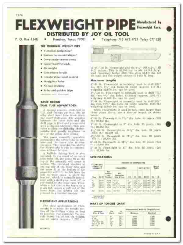 Flexweight Corp 1970 vintage oil catalog oilfield drill stem member