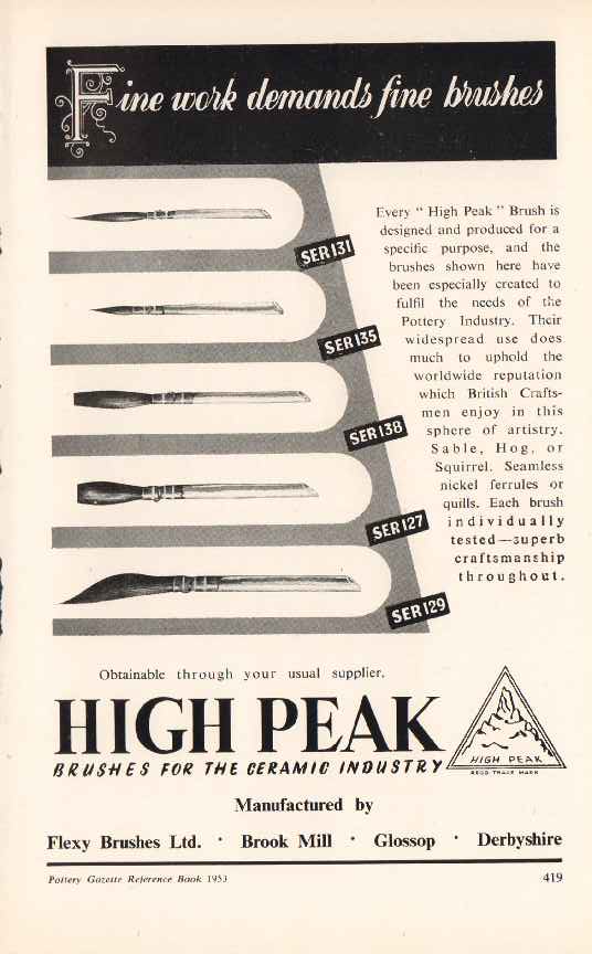 flexy brushes ltd 1953 high peak fine work ceramic pottery vintage ad