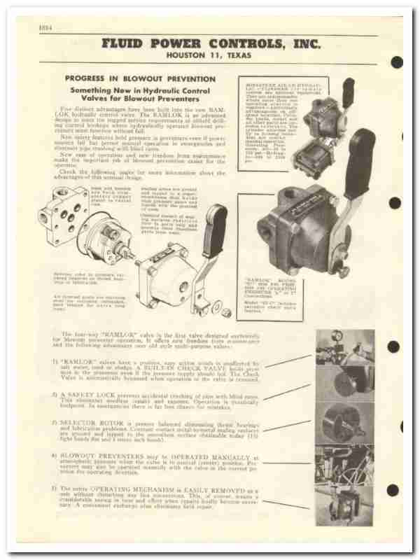 Original 1959 Oil and Gas trade vintage catalog for FLUID POWER CONTROLS, INC. Main office and plant was located at 115 73rd Street, Houston, TX.