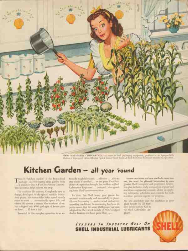 Food Machinery Corp 1947 Vintage Ad Shell Lubricants Kitchen Garden