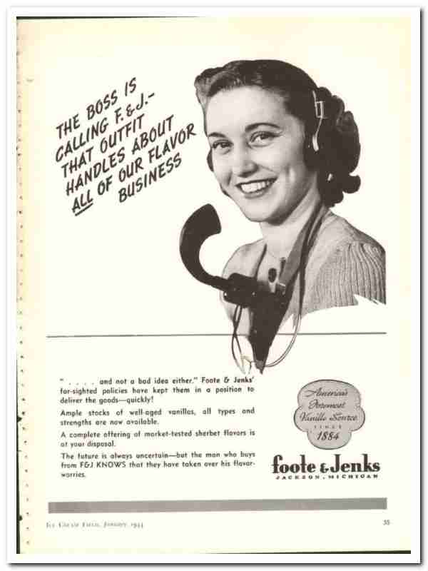 Foote Jenks Inc 1944 vintage ad ice cream vanilla flavor business