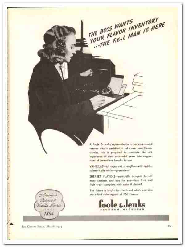 Foote Jenks Inc 1944 vintage ad ice cream vanilla flavor inventory