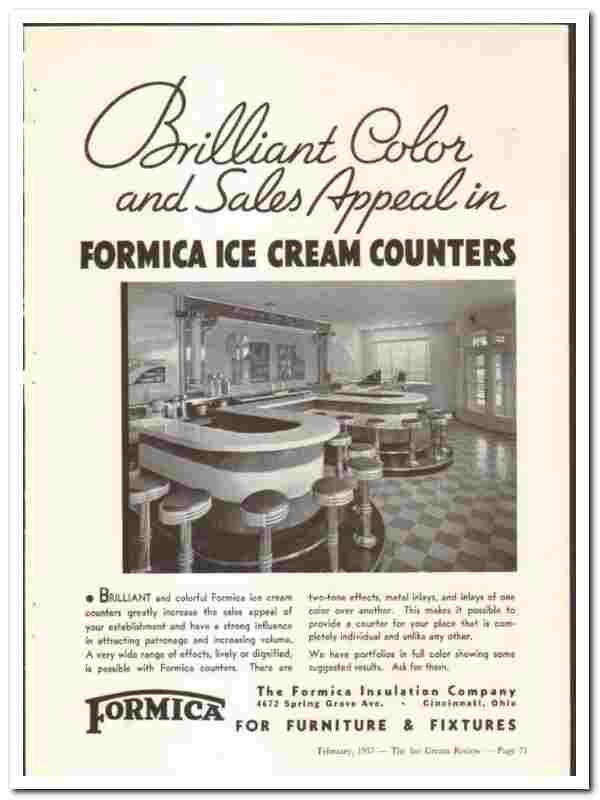Manufacturers of Formica Ice Cream Counters. 'Brilliant Color and Sales Appeal'.
