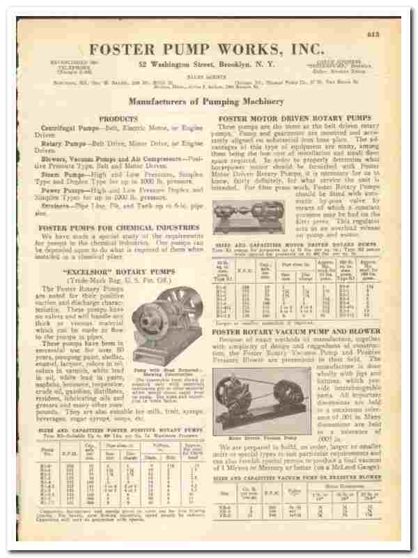 Foster Pump Works Inc 1936 Vintage Catalog Excelsior Rotary Sump