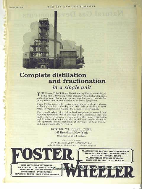 Foster Wheeler Corp 1928 Vintage Ad Oil Distillation Fractionation