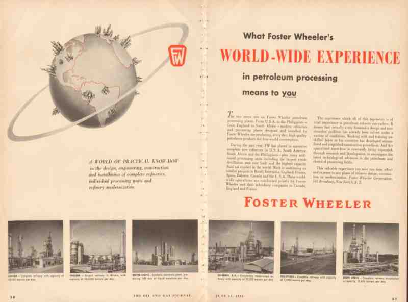 Foster Wheeler Corp 1955 Vintage Ad Petroleum World-Wide Experience