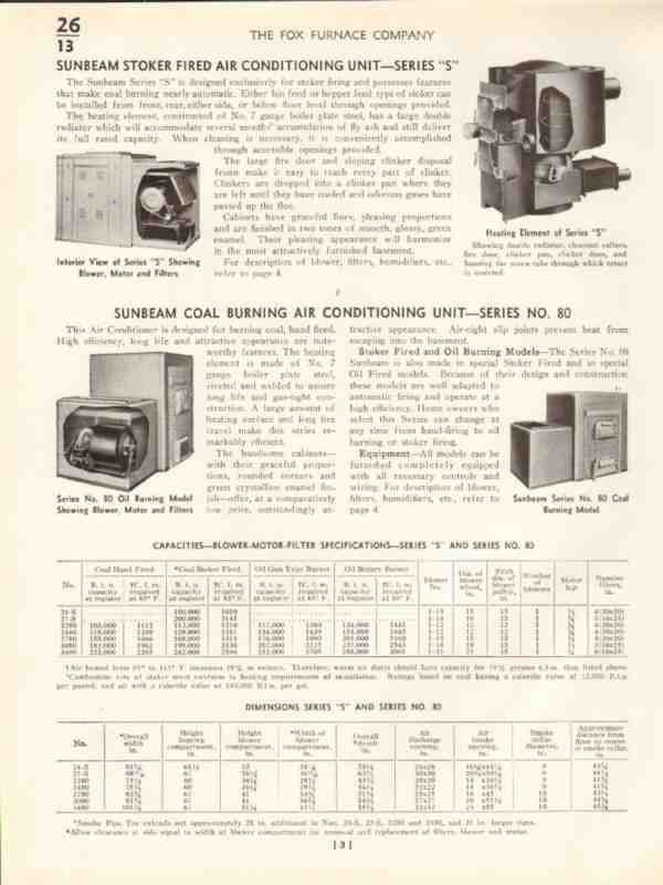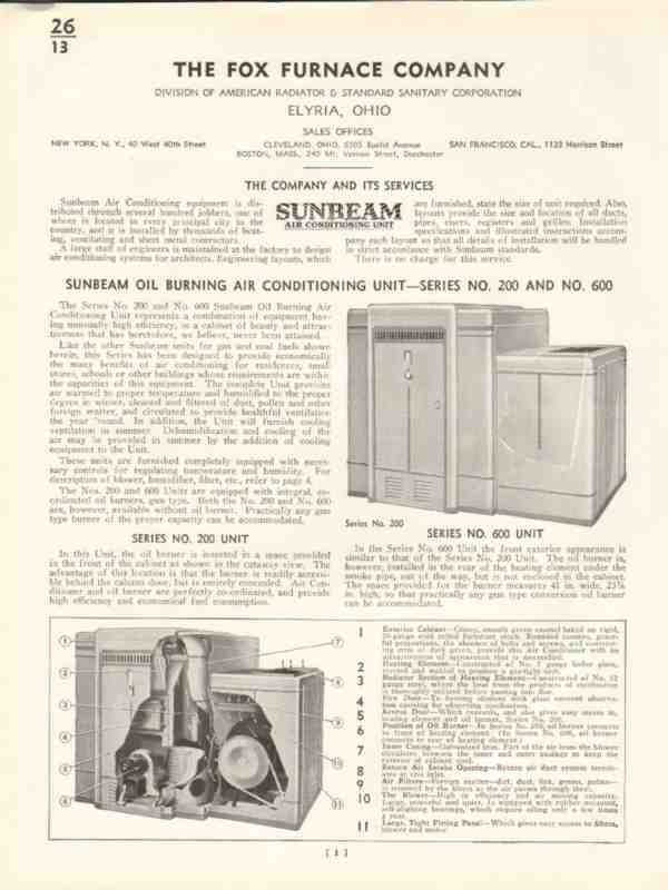 Fox Furnace Company 1938 Vintage Catalog Air Conditioning Unit Sunbeam