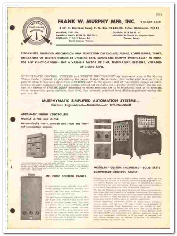 Original 1972 Oil and Gas trade vintage catalog for the FRANK W MURPHY MANUFACTURER, INC. Main office and plant were located at 3131 South Sheridan Road, Tulsa, OK.