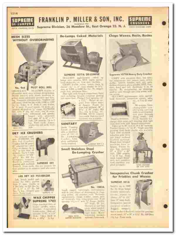 Franklin P Miller Son Inc 1960 vintage industrial catalog crusher