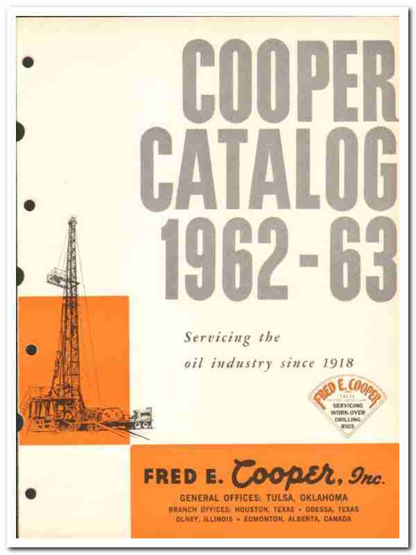 Original 1963 Oil and Gas trade vintage catalog for the FRED E COOPER, INC. Main office and plant was located at 3232 Charles Page Blvd, Tulsa, OK. Branch plants were located at 3840 Navigation Blvd, Houston, TX, at 216 South Williams Street, Odessa, TX, and also located at 910 South West Street, Olney, IL.