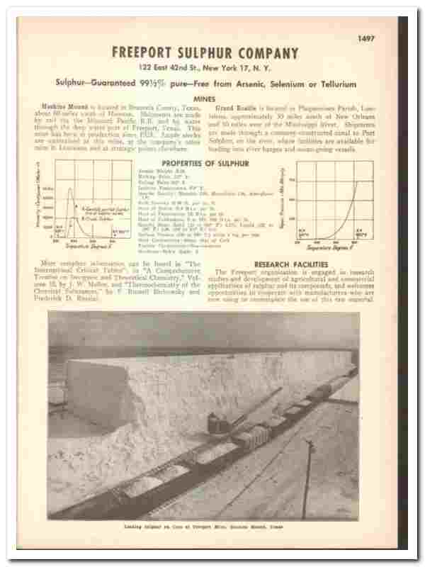 Freeport Sulphur Company 1947 vintage chemical catalog Hoskins Mound