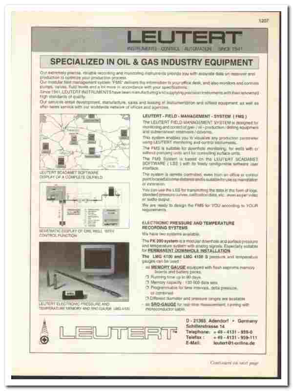Products include Leutert Field Management System (FMS), Electronic Pressure & Temperature Recording System, Dynamometer DYN 77 for Deep Well Pumps and the Leutert Chart Reader Type 'LCR', all are fully.