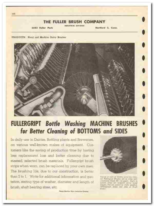Original 1946 dairy trade vintage catalog for the FULLER BRUSH COMPANY. (Industrial Division). Main office and plant was located at 3593 Fuller Park, Hartford, CT.
