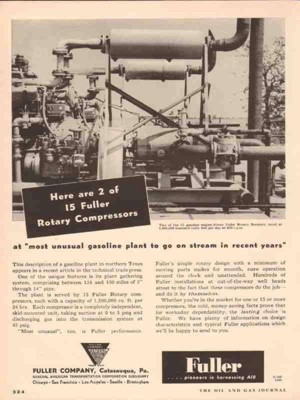 Fuller Company 1955 Vintage Ad Oil Petroleum Rotary Compressors Texas