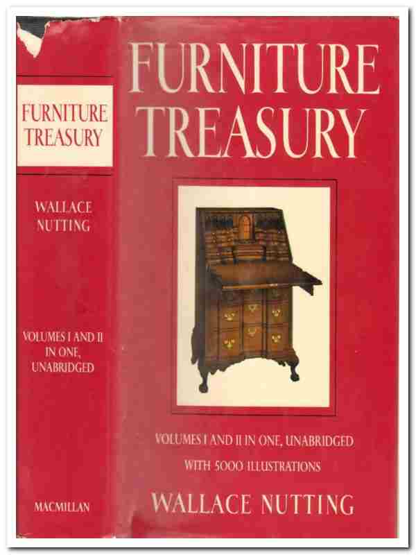 Hard covered book titled FURNITURE TREASURY (Mostly of American Origin). All Periods of American Furniture with Some Foreign Examples in America also American Hardware and Household Utensils Volumes I and II in One, Unabridged with 5,000 Illustrations, by Wallace Nutting, copyright 1928, cloth bound. Very Heavy Book. (Book appears to be a 1950's reprint)