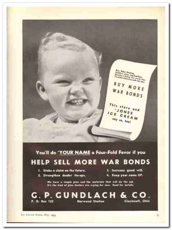 G P Gundlach Company 1943 Vintage Ad Ice Cream war bonds help sell